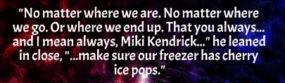 “Miki held up a tennis ball, looked at Sara’s new Pack, and tossed it out into the forest away from the ongoing rave. They all watched it go, then they turned back to Miki.